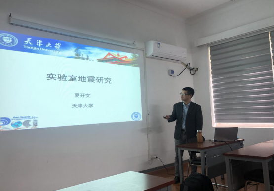 夏开文教授首先介绍了实验室地震研究的物理基础知识,包括弹性回跳理论、粘滑与应力降等相关概念,然后回顾了20与21世纪全球不同研究机构开展的实验室地震研究工作,包括对实验装置、实验室模拟超剪切破裂、自发式失稳、平直走滑断层亚失稳等特征进行相关介绍,最后介绍了天津大学与多伦多大学最近开展的实验室地震研究工作,包括对地震动态触发过程、自发式地震进行了相关介绍。