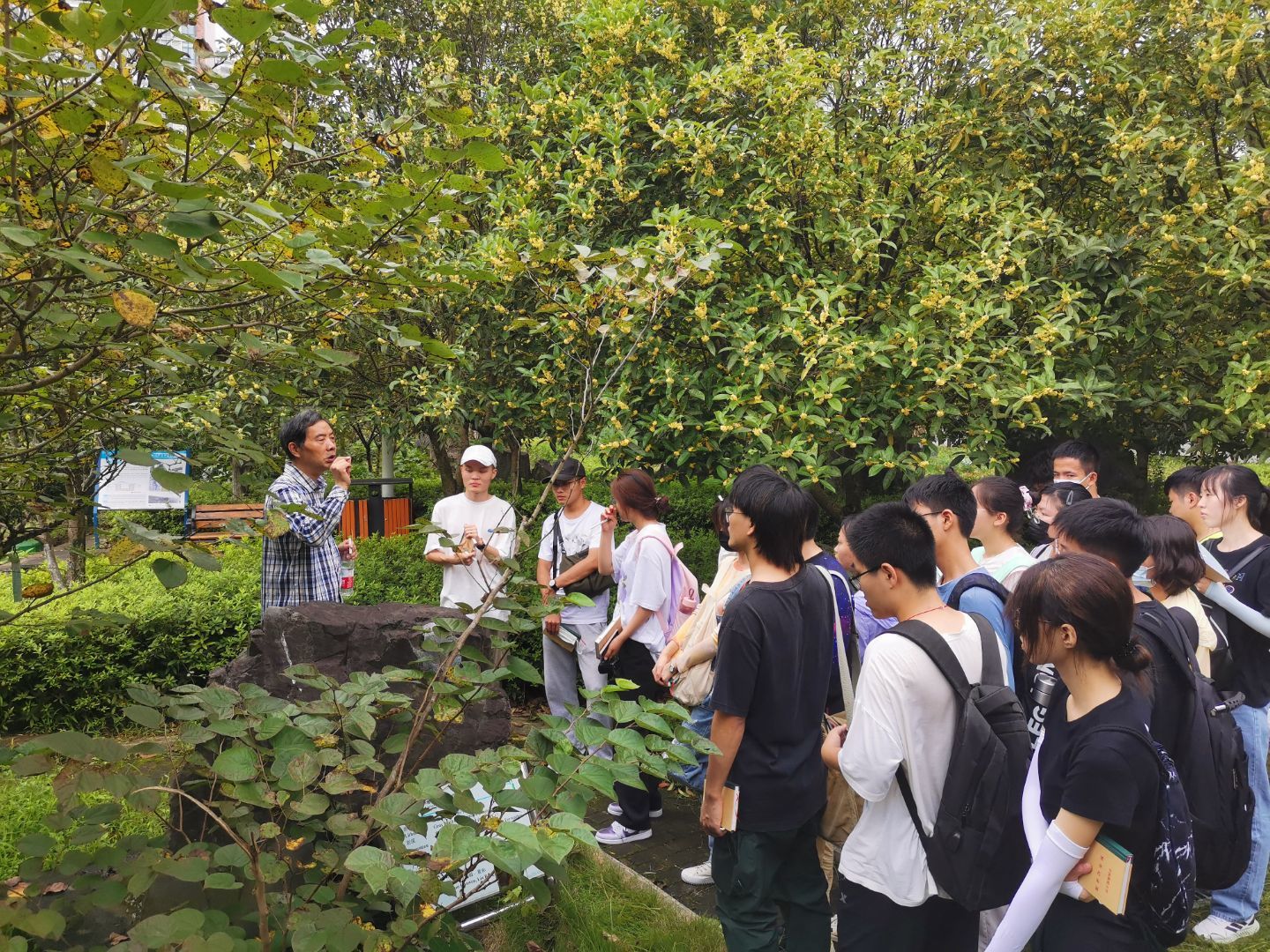 实习第一天学院张志老师带领学生参观岩石园