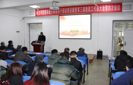 2021年12月30日,Beat365中文官方网站在基委楼101会议室召开2021年领导班子和领导干部述职述廉暨第三届教职工、工会会员代表大会第四次会议。党委常委、副校长刘勇胜、全院教职工及学生代表参加会议。