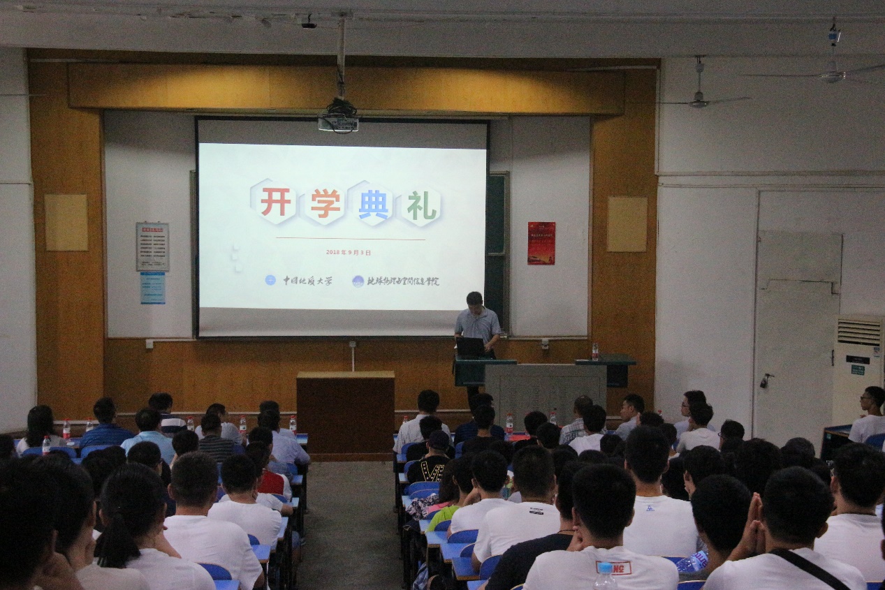 (通讯员 黄妍 郑凯)9月3日上午9时,Beat365中文官方网站2018级新生开学典礼在教一楼2阶举行。学院党委书记刘子忠、院长胡祥云、党委副书记李周波、副院长顾汉明、罗银河、吴柯、各系主任、党支部书记、新生班主任、学院学工组专兼职辅导员及2018级全体新生参加典礼。会议由李周波副书记主持。