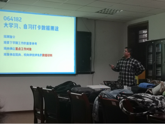 首先,团支书李伟光转达了来自学院的通知:全面取消清考,重视考风考纪。希望同学们公平考试,不要抱有侥幸心理,每一位监考老师都是有着多年的“监考经验”,勿“临时备考”。同时,为了同学们的期末可以有一个理想的成绩,班委们准备将个人的自习时间纳入到综测的考核之中。旨在作为一种积极的、正向的引导,鼓励同学们学习,帮助同学们养成良好的学习习惯。