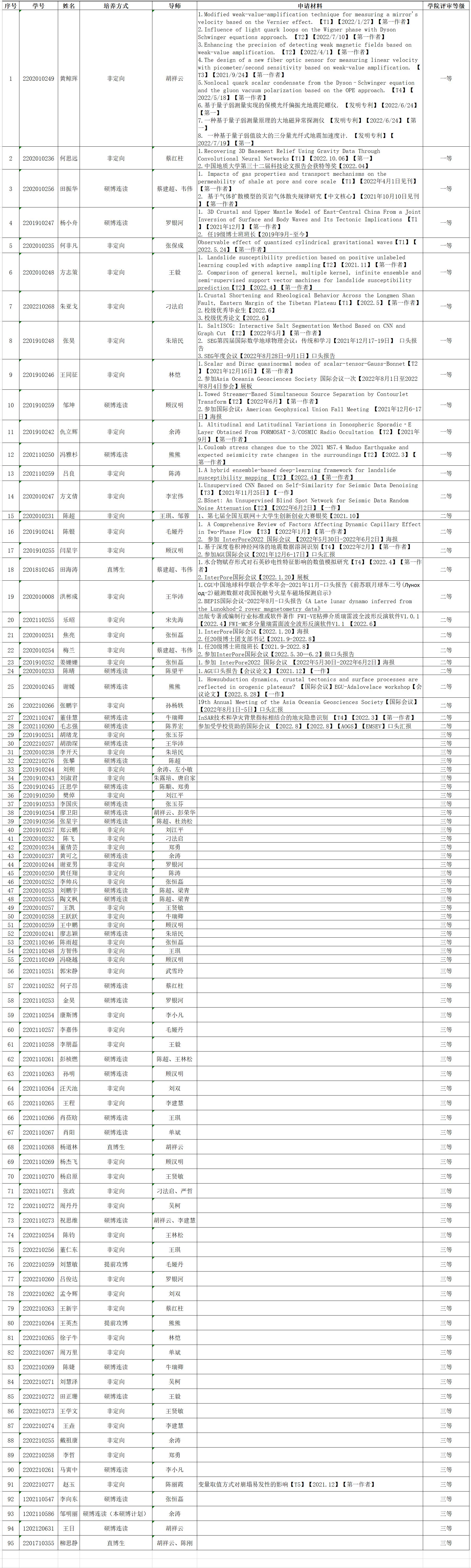 本公示中的评定等级为博士奖助学金中的学校学业助学金等级,学业奖学金及国家助学金部分不分等级,根据学校发布的参评条件及资助对象要求,符合相关条件的同学均获评。