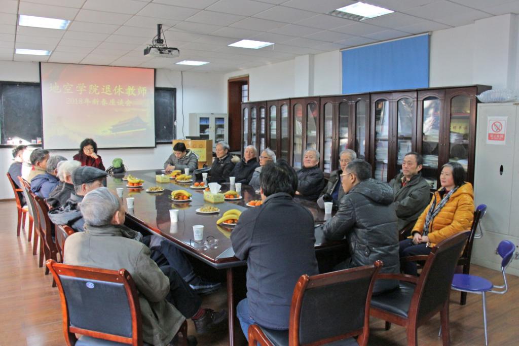111日上午,Beat365中文官方网站退休教师2018年新春座谈会在物探楼214召开。Beat365中文官方网站党委书记刘子忠、院长胡祥云、党委副书记李周波、分工会主席刘江平及学院15名退休教师参加座谈会。会议由刘子忠书记主持。