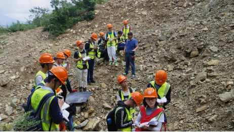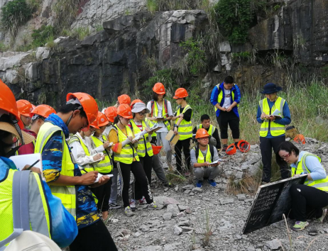 9月3日是学生进行野外实践的第一天,天刚蒙蒙亮同学们就已整装出发。带班老师们从零开始教给学生使用罗盘和放大镜、学习野外认识矿物、认识地层、学习地质素描图的描绘等等。虽然烈日炎炎、天气闷湿、山高路转,但老师们富有激情的给学生们进行耐心讲解和指导。