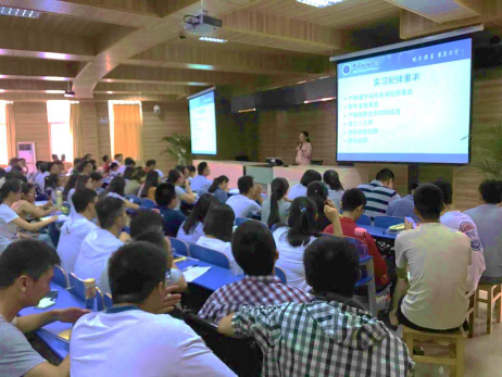 陈丽霞队长在实习动员大会上给学生讲学习纪律要求(9月2日)