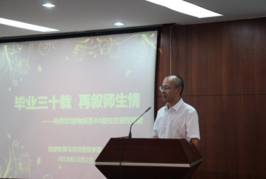 原1984级物探系辅导员温兴生老师、任课老教师代表刘庆生老师先后发言,为校友们取得的成就感到十分骄傲和自豪,他与大家共同追忆了当年的校园往事,分享了与大家重逢的喜悦,表达了对各位校友的美好祝愿。