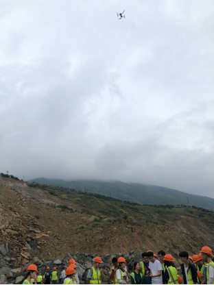 地信专业学生在无人机航飞地质灾害的教学现场