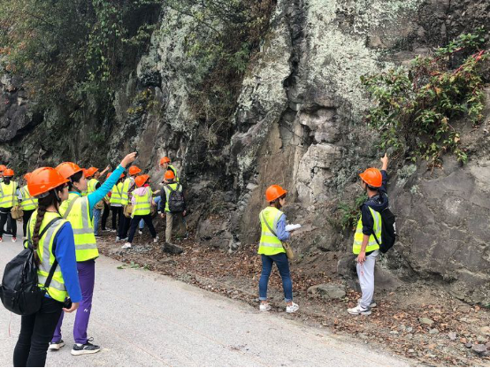 喻鑫老师在给064161班学生讲解志留系地层与岩性观察要点