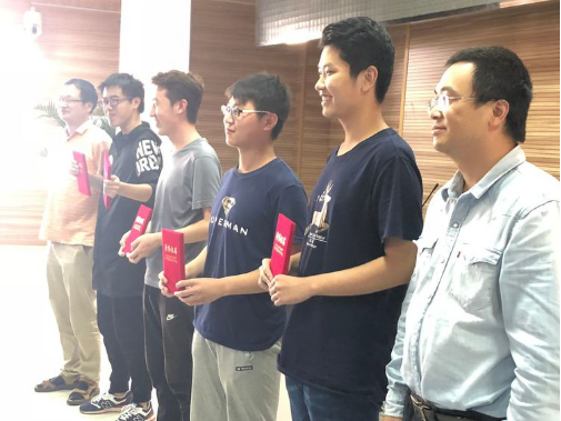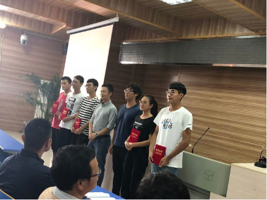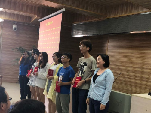 杨宝忠老师和汪利民老师在给李四光班优秀学生颁奖