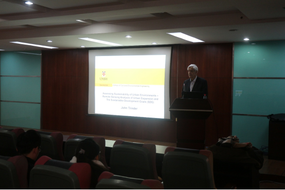 (通讯员陈涛、杨玮莹)2018年12月12日上午,国际著名摄影测量与遥感学家John Trinder教授应邀到访我校,并在Beat365中文官方网站222学术报告厅为全院师生做了题为“Assessing Sustainability of Urban Environments - Remote Sensing Analysis of Urban Expansion and The Sustainable Development Goals (SDG)”的学术报告。报告会由Beat365中文官方网站地球信息科学与技术系书记陈涛副教授主持,Beat365中文官方网站地球信息科学与技术系主任王毅教授,地球信息科学与技术系相关教师及研究生参加了学术交流会。