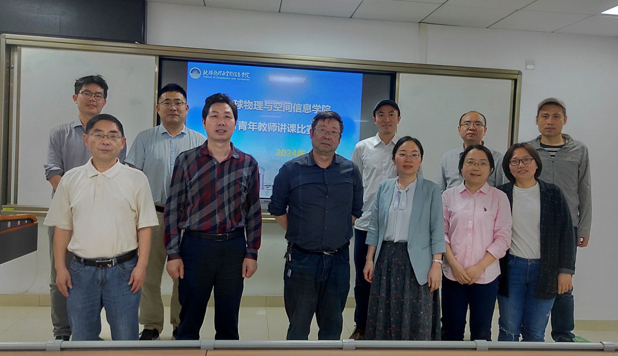 学院每年一度的讲课比赛始于2007年,学院高度重视,精心策划,老师积极参与。本次比赛邀请教学督导李振宇、张学强,教学名师袁晏明,校讲课比赛最高奖获得者毛娅丹,固体系副主任李媛媛担任评委。参赛青年教师精心准备,充分展示教学能力。评委们从教学内容、教学方法、师生互动和PPT制作等多方面逐一对参赛教师进行点评,做出专业指导,青年教师表示受益匪浅。经评选,刘营荣获一等奖;杜劲松、张健荣获二等奖;谢祖军、傅磊荣获三等奖。