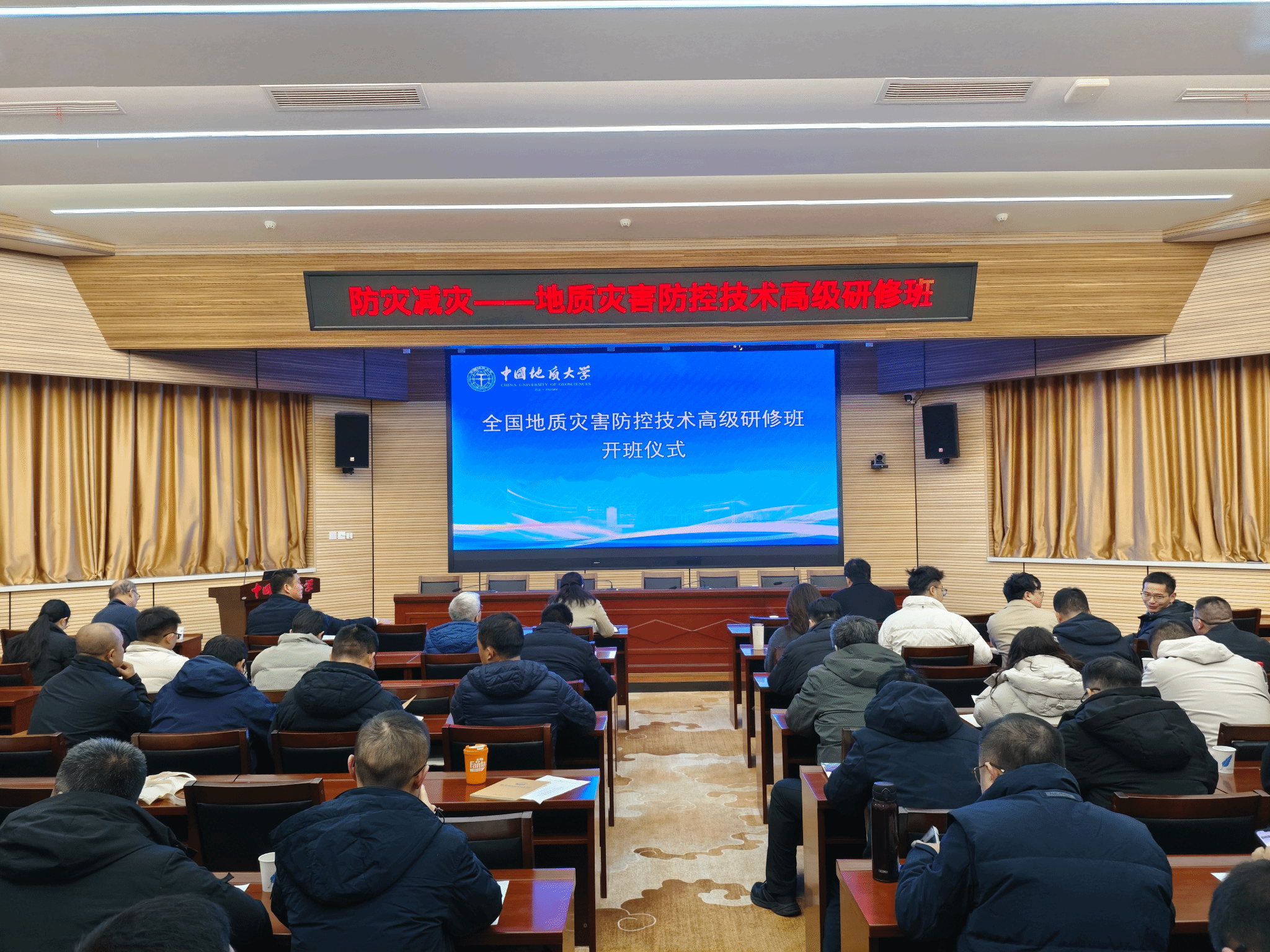 (通讯员刘鹏宇)为有效提升自然资源和地勘单位专业技术人员能力,高质量服务全国地质灾害防控工作,3月4日、5日上午,全国地质灾害防控技术高级研修班暨湖北省地质局高级专题研修班在我校开班。Beat365中文官方网站(武汉)党委副书记王甫,湖北省地质局环境地质处处长孙仁先,Beat365中文官方网站党委书记马彦周、院长熊熊、副院长陈丽霞以及来自全国自然资源和地勘单位160余名学员参加开班仪式。熊熊院长主持开班仪式。