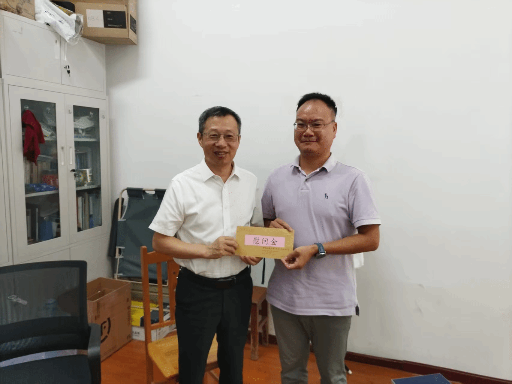 学校办公室副主任胡燕、人力资源部副部长路金阁、科学技术发展院副院长李鹏飞和学院党委书记马彦周等参加慰问活动。