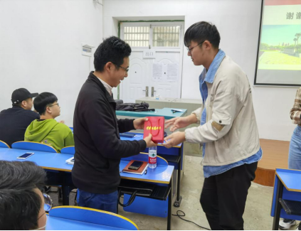 报告会最后,学生代表为朱老师赠送“悟谈人生”专属纪念品。