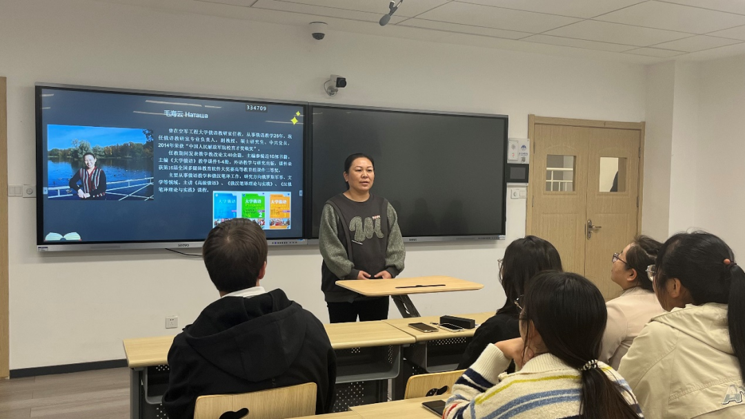 毛海云向同学们介绍了俄语专业的人才培养模式、专业特色、专业发展前景以及未来就业方向。她表示,俄语专业发展空间广阔,并鼓励同学们找准目标,做好职业规划。
