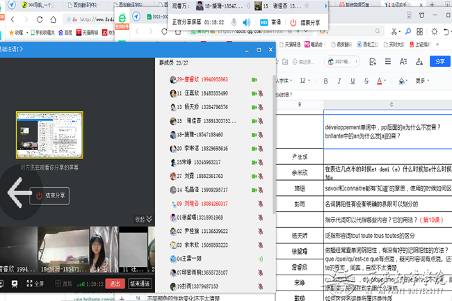 由于疫情防控需要,按照学院安排,万象城体育awcsport法语系2021级《基础法语I》期末考试延迟至2021-2022学年第二学期初进行。为加强学生对本学期该课程所学知识的巩固,解决学生在复习过程中遇到的问题,任课老师在线上以不同形式为学生进行答疑辅导。主要采取如学习通课程平台讨论答疑、qq群聊天解答、在线直播答疑辅导等形式。