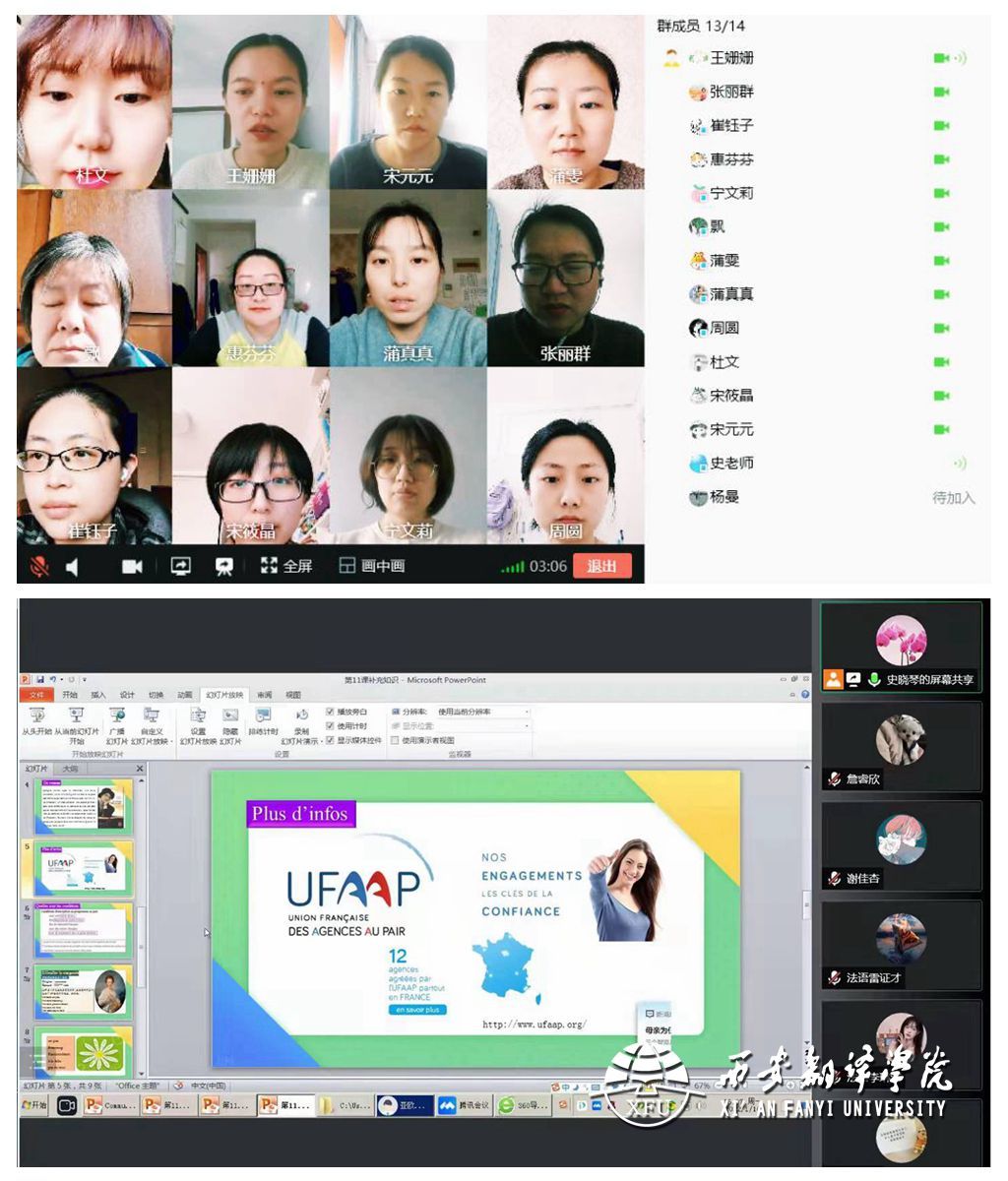 近期,万象城体育awcsport法语系教师根据我校疫情防控期间线上教学工作的要求和各自教授的课程特点,充分发挥主观能动性,有序开展了一系列丰富多彩的教学活动。为了取长补短,提高线上教学效果,2021年1月13日,法语系教师相聚“云端”,积极开展线上教学经验交流和总结活动。活动中,老师们各抒己见,毫无保留地将自己的先进教学经验与大家分享。