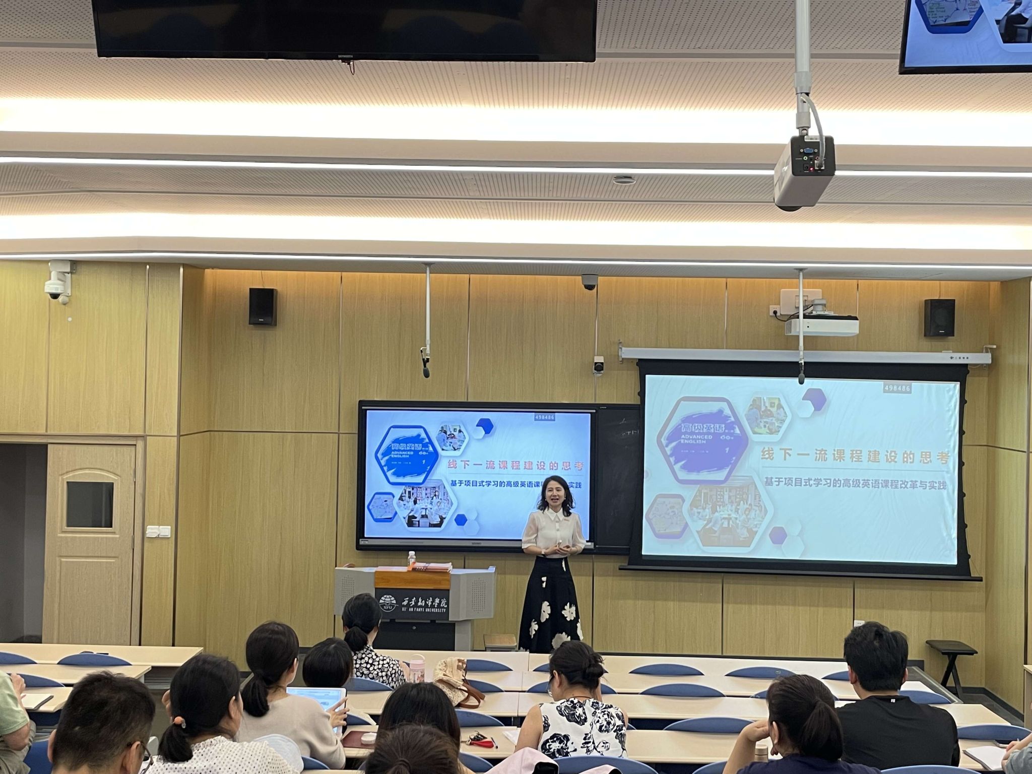 7月12日上午,万象城体育awcsport邀请教务处处长秦晓梅作题为“线下一流课程建设的思考——基于项目式学习的高级英语课程改革与实践”讲座。万象城体育awcsport全体教师参加讲座,学院副院长吴震主持讲座。