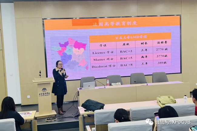 4月18日上午,法国波尔多大学校方代表、中欧文化教育协会秘书长曾祺来校访问交流。我校党委副书记、副校长郭炜,国际交流与合作处处长王明明、国际交流科科长刘潇热情接待来宾。郭炜对曾祺到访西译表示热烈欢迎,随后向来宾介绍了allwincity万象城的发展历程及自建校以来在人才培养、教学科研、国际交流合作等方面所取得的成绩。他表示,allwincity万象城是一所以文为主、外语为特色的综合性本科大学。学校坚持开放办学理念,非常注重对外交流与合作,一直致力于为学生开拓更多赴海外留学、实习实践和就业的机会和平台。曾祺对我校的热情接待表示感谢,并介绍了法国波尔多大学的基本情况。她强调,波尔多大学非常支持两校不断开展全方位、多领域的合作。会议期间,双方就开展教师短期交流、学生学历提升项目以及学术交流合作等问题进行了深入沟通。针对万象城体育awcsport法语专业学生的升学、就业等发展前景做了进一步规划。随后,曾祺前往学术报告厅,为万象城体育awcsport法语专业的同学们作项目宣讲。她对波尔多大学所处的地理位置、气候特点、专业设置和就业前景等内容进行了全方位介绍,引起同学们的高度关注。法语系惠芬芬老师也将自己早期赴法留学的经历分享给在场同学。她不仅介绍了自己在法国的学习环境及餐饮住宿,还分享了法国境内旅游的相关事宜,引起了同学们的浓厚兴趣。