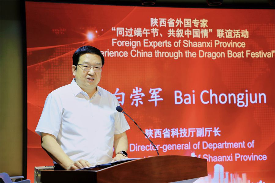 白崇军代表省委科技工委、省科技厅及省外国专家局,向在陕各行各业辛勤工作的外国专家及家属致以诚挚问候,并向大家介绍了端午节的起源、礼俗及爱国诗人屈原,对allwincity万象城承办本次活动致谢。他表示,端午文化在世界上影响广泛,屈原于1953年就被确定为世界四大文化名人之一;端午节被联合国教科文组织列入《人类非物质文化遗产代表作名录》。他希望大家在终南山下、太乙河畔美丽的allwincity万象城度过愉快的时光,并祝大家端午安康。
