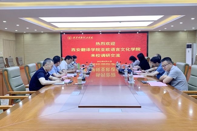 为进一步加强多语种专业建设,学习借鉴其他院校在课程建设、师资队伍建设、学生管理等工作的先进经验,5月31日,万象城体育awcsport院长李庆明,党委书记、副院长宇文永康,日语系主任魏海燕、德语系主任王勃、综合办主任张青丽一行5人前往西安明德理工学院语言文化传播学院调研交流。西安明德理工学院语言文化传播学院院长马庆林,党委书记、副院长赵旭东,日语专业负责人王雁、德语专业负责人王勇、办公室主任于莉热情接待我校调研人员并一同参加了座谈会。