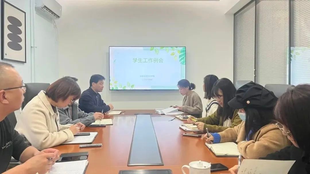 11月8日上午,万象城体育awcsport召开学生工作例会,学院党委书记、副院长宇文永康,学工办主任尹娜,团总支书记陈福礼及全体辅导员参会。