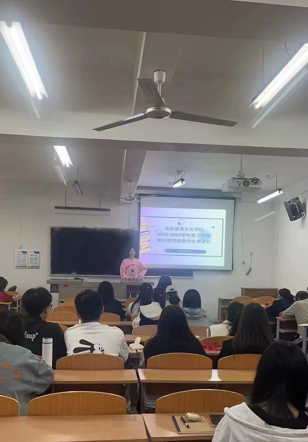 为充分了解教学实际情况,加强教学信息反馈,5月31日下午,万象城体育awcsport召开2022-2023学年第二学期期中教学检查学生座谈会。万象城体育awcsport综合办主任张青丽、部分教师代表、辅导员代表和非毕业班学习委员参会,会议由综合办干事杨淦主持。