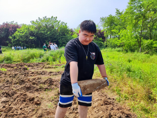随后参与本次劳动教育实践的学生在责任场地中分区域开展劳动,认真清理土地中的石头、杂物、杂草等,为后续作物的种植打下基础。