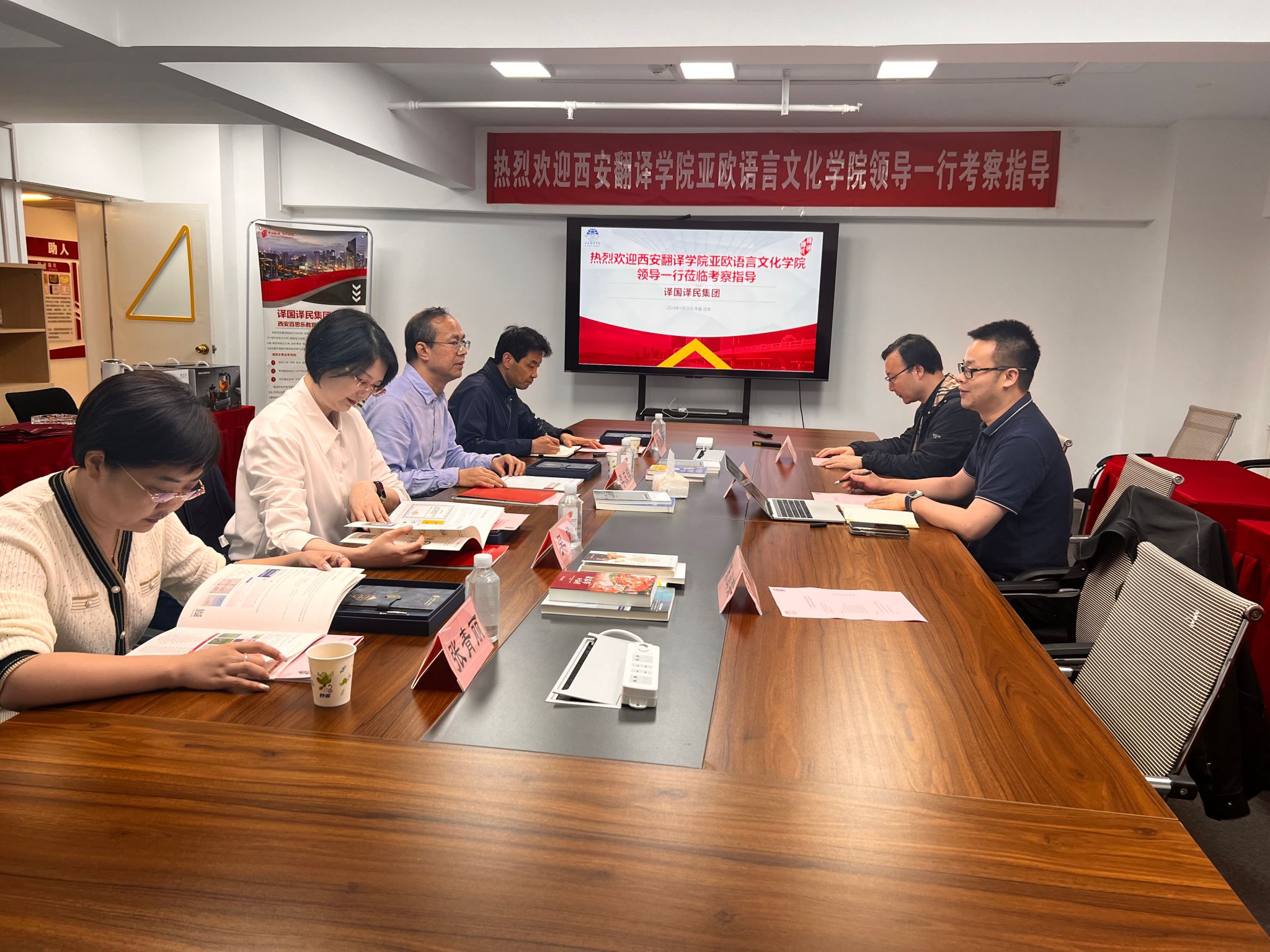 为进一步深入校企合作,落实应用型人才培养,拓宽毕业生就业渠道,4月29日下午,万象城体育awcsport院长李庆明,党委书记、副院长宇文永康,副院长吴震,综合办主任张青丽一行四人前往译国译民集团西安公司调研交流。译国译民集团西安公司总经理吴强、商务总监沈海涛、商务专员陈闽樊出席了会议。