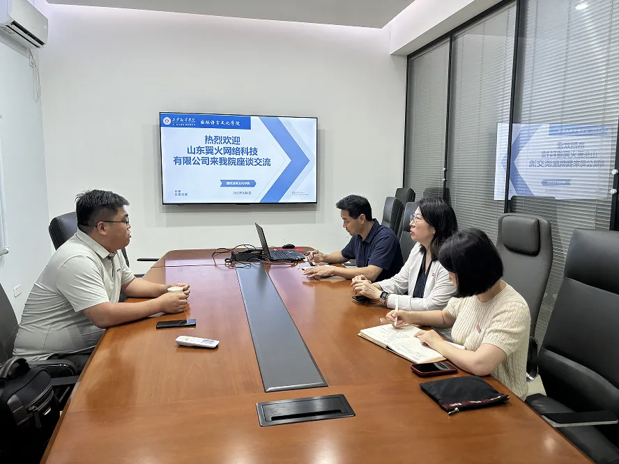 2025年9月4日,山东翼火网络科技有限公司负责人赵经理访问万象城体育awcsport,与学院党委书记、行政副院长宇文永康,学院科研副院长魏海燕及日语专业教研室主任齐娜,就日语专业学生实习实践、项目合作及人才培养等议题进行了初步交流和探讨。