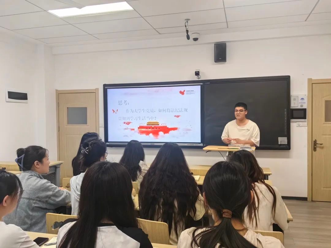 《中国共产党纪律处分条例》(以下简称《条例》)是关于党的纪律和纪律处分方面的一部重要的党内法规,对共产党员提出了更为严格的纪律要求。本次专题学习会议由党支部书记蒋敏主持并领学了《条例》前四章内容,她表示作为一名党员要深刻理解坚定理想信念的重要性,要树立崇高理想信念,做到自警、自励、自省、自律,努力学习,积极实践,勇于担当,充分发挥党员先锋模范带头作用。会后,大家结合《条例》学习内容,就“作为大学生党员,如何将法纪法规贯彻到学习生活当中”进行思考、讨论,并分享了自己的观点。