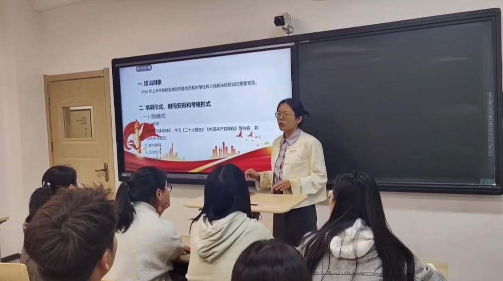 李潇琦解读了《关于举办西译党委党校第四十三期预备党员培训班的通知》的内容,对此次培训的形式、时间安排、培训内容、考核办法、相关要求进行了介绍,并对培训纪律要求作了强调。她表示,此次培训不仅是预备党员成长的重要一步,也是对是否能够如期转正的严格考验,她对预备党员提出以下几点要求:一是要珍惜此次培训机会,学深悟透培训内容,认真学习,勤于思考,积极参与小组讨论,做到理论联系实际;二是提高思想认识,端正入党动机,培训学员要提高政治站位,深入理解国家方针和政策,了解国际形势,将个人发展与民族利益深度融合;三是发挥模范带头作用,要时刻以党员的高标准严格要求自己,在学习、生活和工作中展现良好的道德品质和个人素质,发扬担当精神和奉献意识。