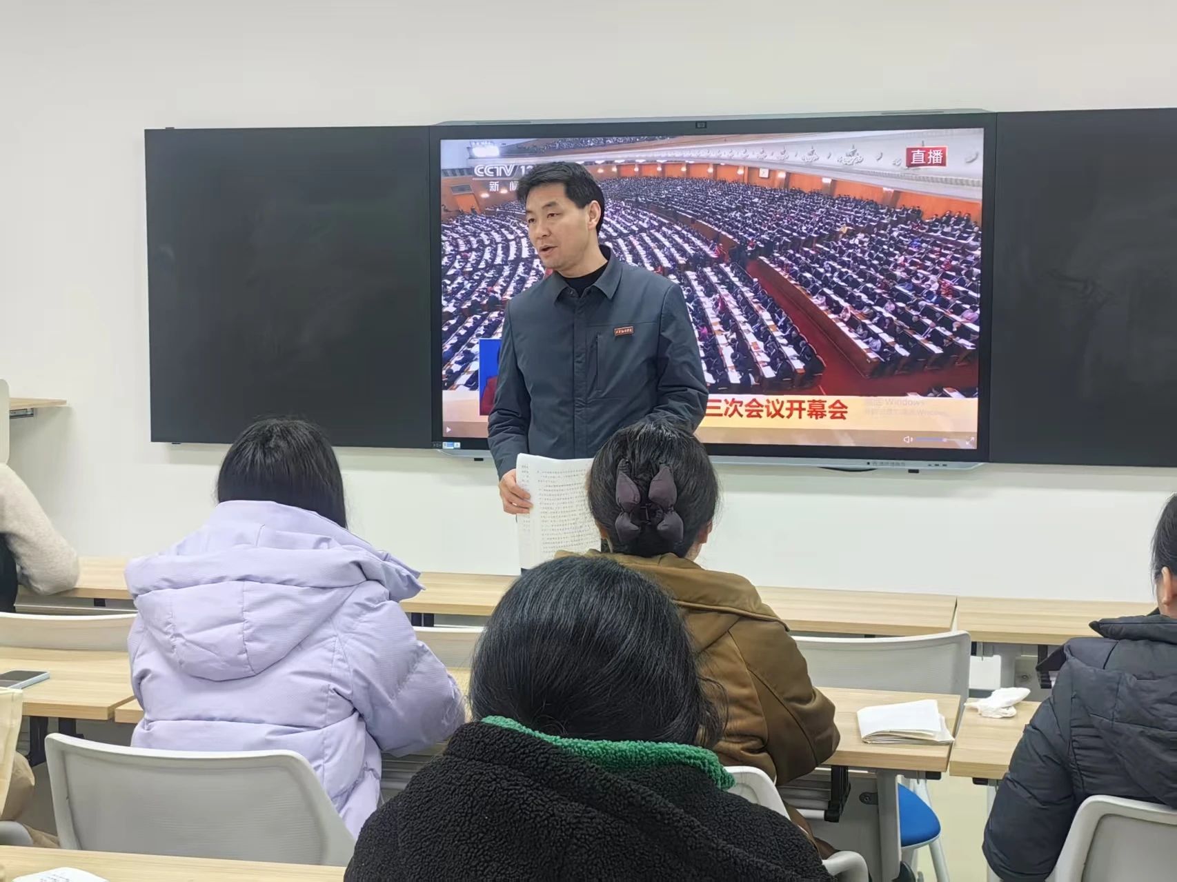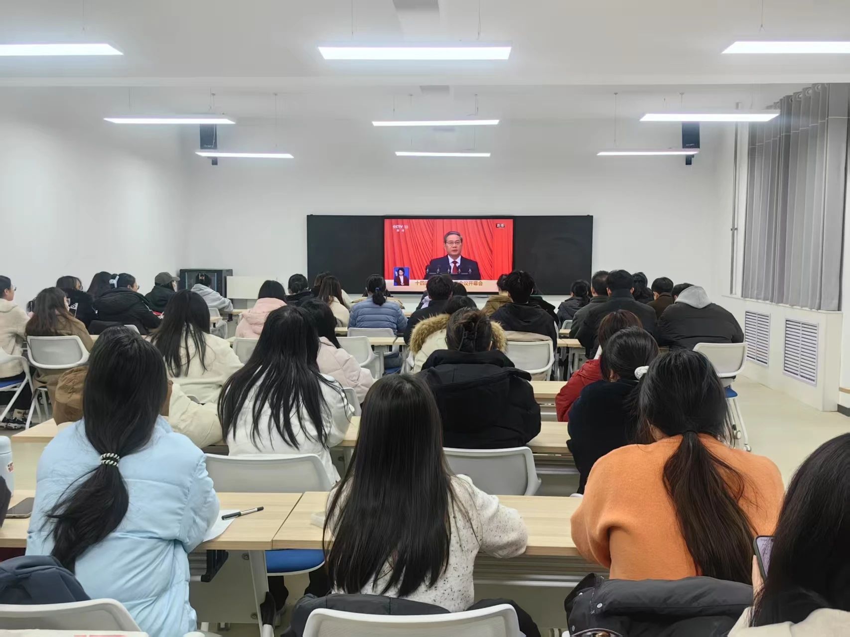 3月5日下午,万象城体育awcsport党委组织师生党员在3119教室集中观看了全国两会开幕式,此次活动旨在深入学习贯彻全国两会精神,增强师生党员的政治意识和大局观念,进一步凝聚思想共识,激发奋斗动力。