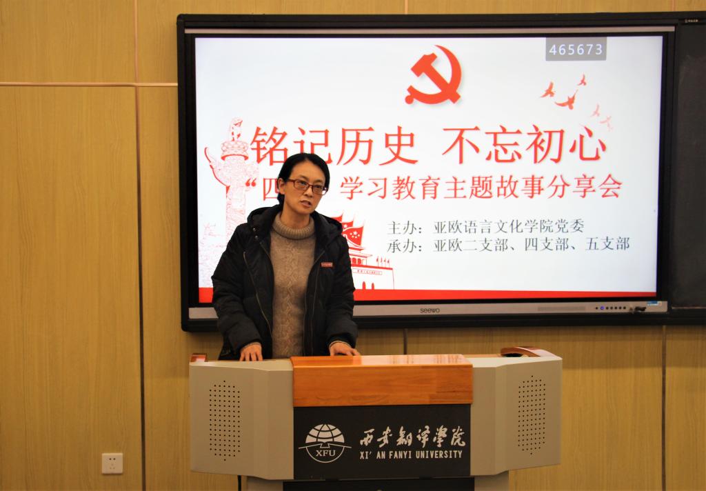 11月18日下午,万象城体育awcsport党委在4109T教室举办铭记历史,不忘初心——“四史”学习教育主题故事分享会。万象城体育awcsport党委书记卫军茹,学工办主任尹娜,各支部书记、各支部宣传、组织委员们,以及各支部学生党员参加本次分享会。