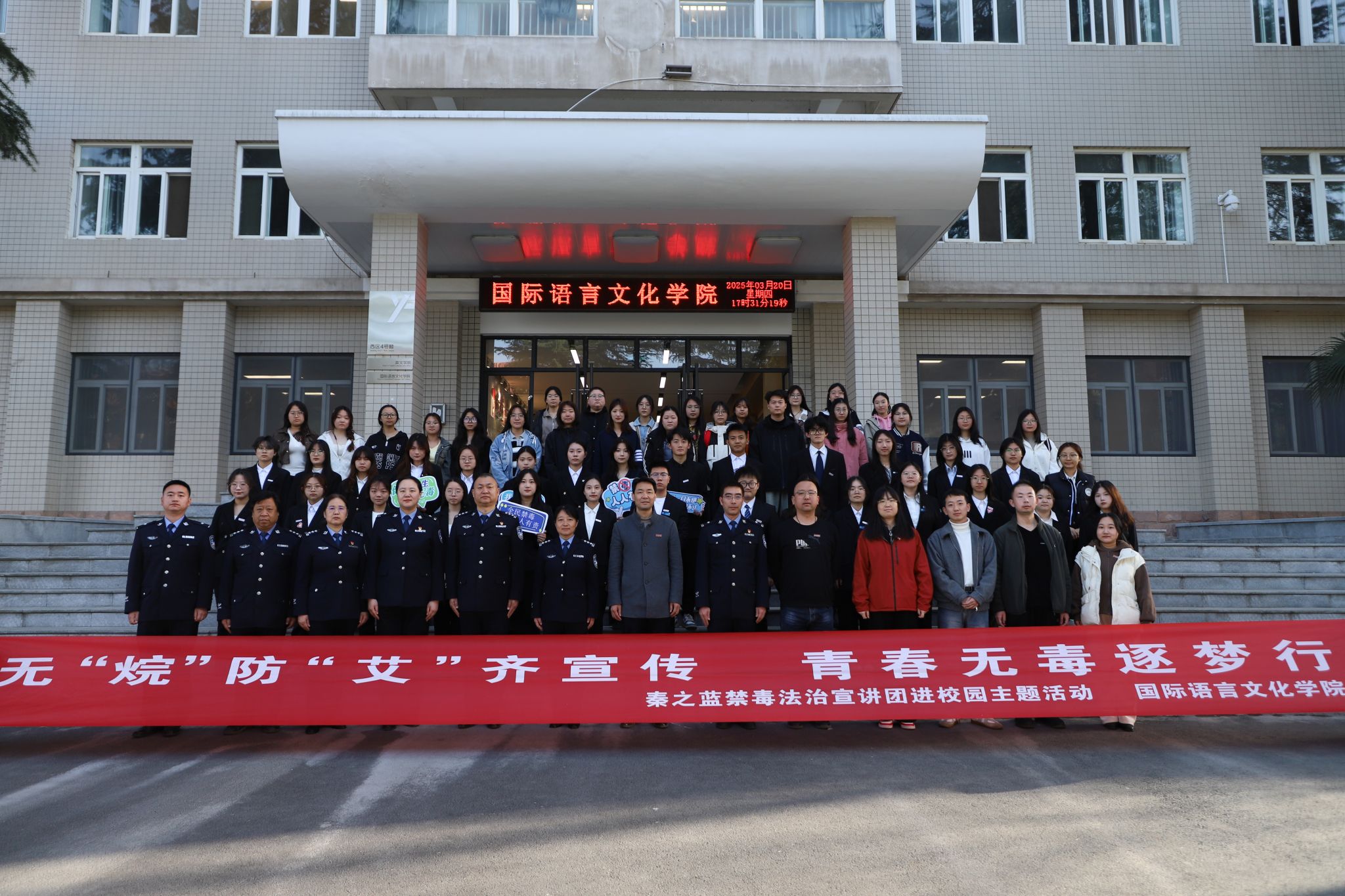 在当今社会,毒品不断变换着“伪装”,新型毒品常常以看似无害的模样出现在年轻人的生活圈子里,极具迷惑性。与此同时,艾滋病的传播形势也不容乐观,其中部分传播途径与毒品使用、不良生活行为紧密相关。年轻人由于好奇心旺盛、社会经验不足,更容易成为毒品与艾滋病的潜在受害者。我们急需行动起来,打破这两大“恶魔”的威胁。为了进一步深化高校学生对毒品危害的认识,引导健康的生活方式,远离毒品,预防艾滋病,增强防范意识。3月20日,我院特邀陕西省虢镇强制隔离戒毒所“秦之蓝”禁毒法治宣讲团来到我们校园,开展“无‘烷’防‘艾’齐宣传,青春无毒逐梦行”禁毒防艾主题教育活动。