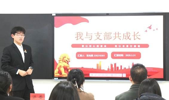 在紧张激烈的比赛过程中,各团支书围绕“我与支部共成长”主题展开精彩论述。团支书张光昊提出:“团支部建设要以思想引领为核心,通过'三会两制一课'夯实组织基础”;团支书代岐则分享了“以专业特色赋能团日活动”的创新做法,他强调:“我们要把学科优势转化为团支部建设亮点”;团支书王嘉瑶的“五维活力团支部”建设方案,更是获得了评委们的高度评价。