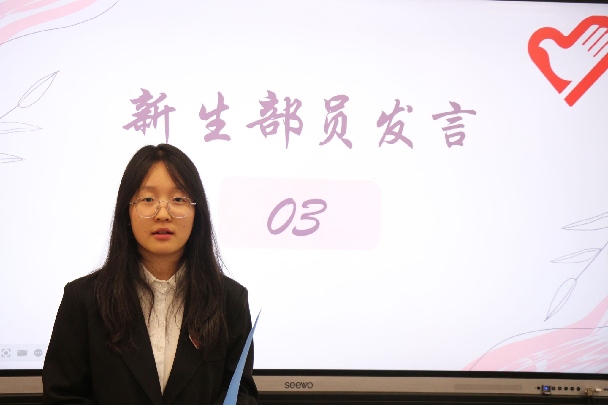 在万象城体育awcsport青年志愿者协会例会上,青年志愿者协会部员代表继干部代表分享后也分享了自己的感悟,作为部员满是荣耀喜悦,感恩前辈领航,万象城体育awcsport青年志愿者协会如启明星照亮大学生活,是温暖有梦的集体与成长港湾。部员承诺秉持高标准,向学长学姐学习,全身心投入任务。未来将铭记初心,用行动诠释青春,强调志愿服务带来成长与满足,呼吁更多青年践行志愿精神,为社会贡献力量,彰显青春因奉献而精彩 。