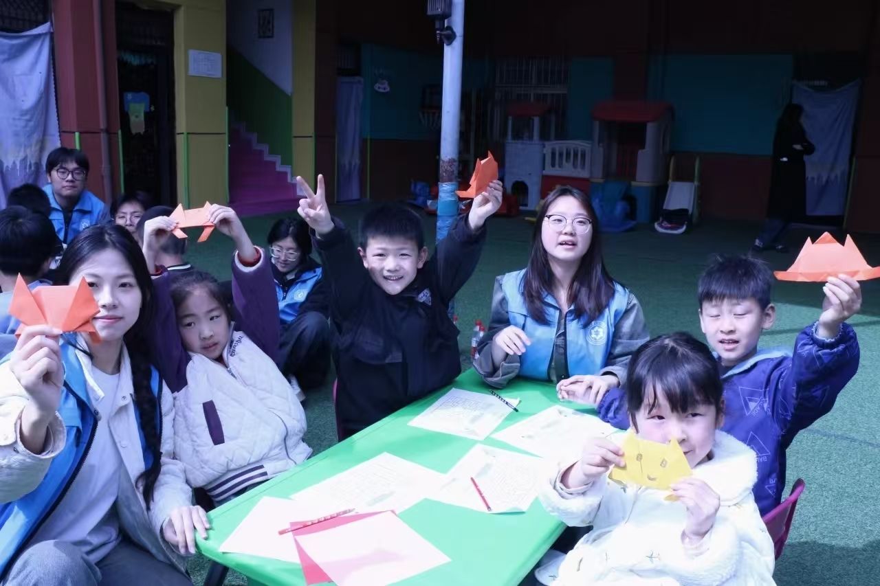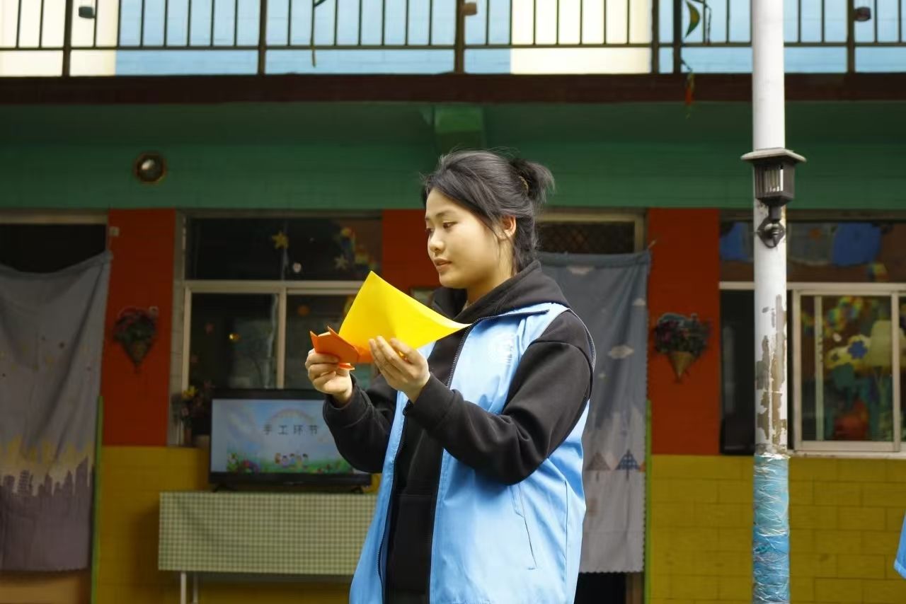 在手工制作环节,志愿者们为孩子们准备了五颜六色的彩纸和安全剪刀。在志愿者们的耐心指导下,小朋友们认真地学习折纸技巧,一张张普通的彩纸在稚嫩的小手中变成了活灵活现的小青蛙。