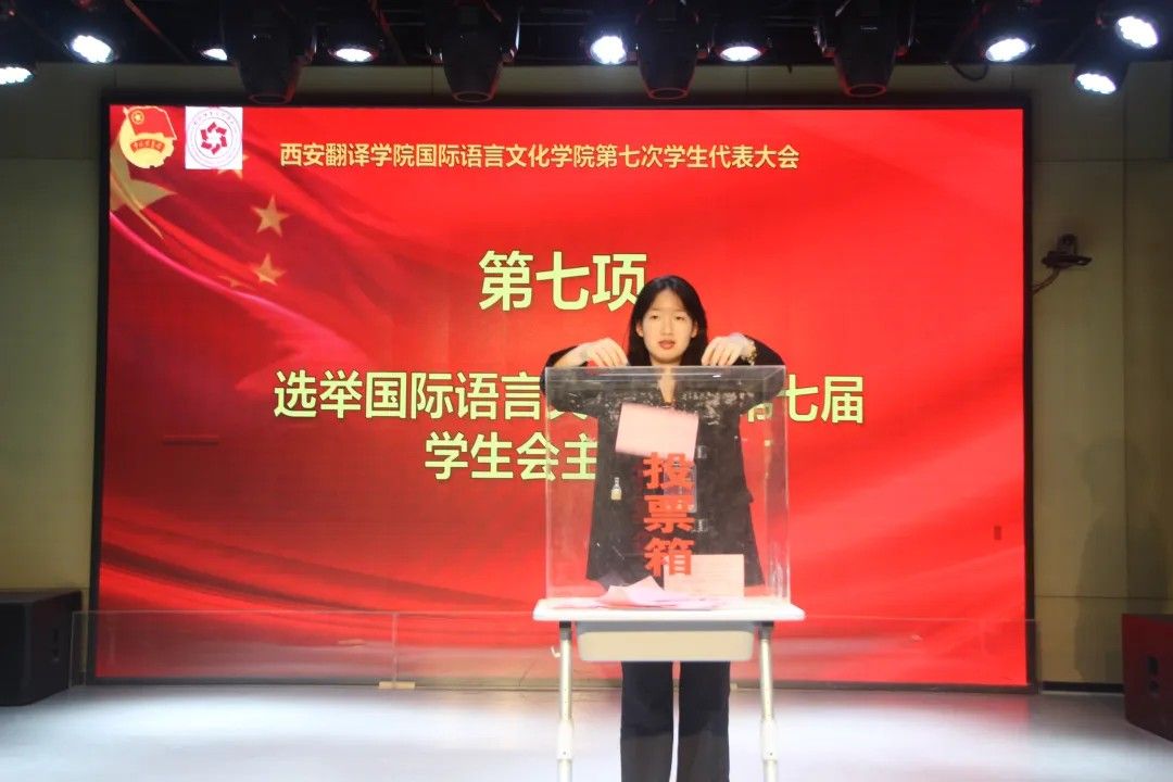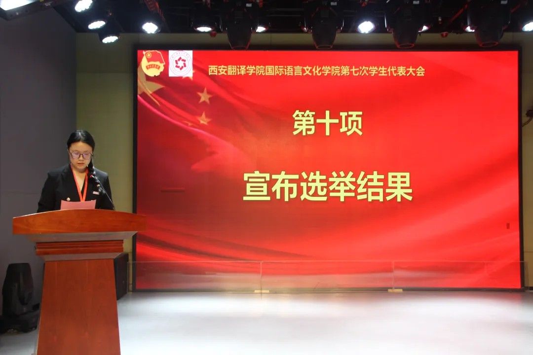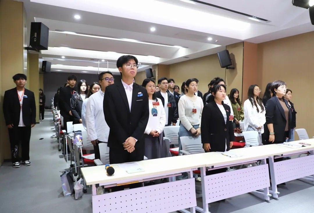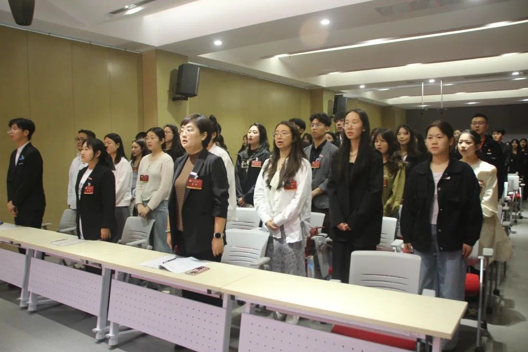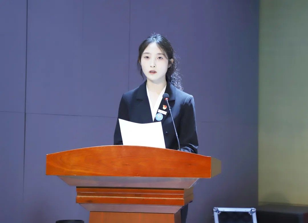 校学生会主席团代表卢艺瑶发言:肩负时代赋予的重任,在时代的宽广舞台上施展才干,以本次学代会为新的起点,勇担桥梁纽带之责,在语言文化的深耕中厚植理想,在服务同学的实践中增长才干。携手同行,用奋斗书写属于万象城体育awcsport学子的青春答卷!