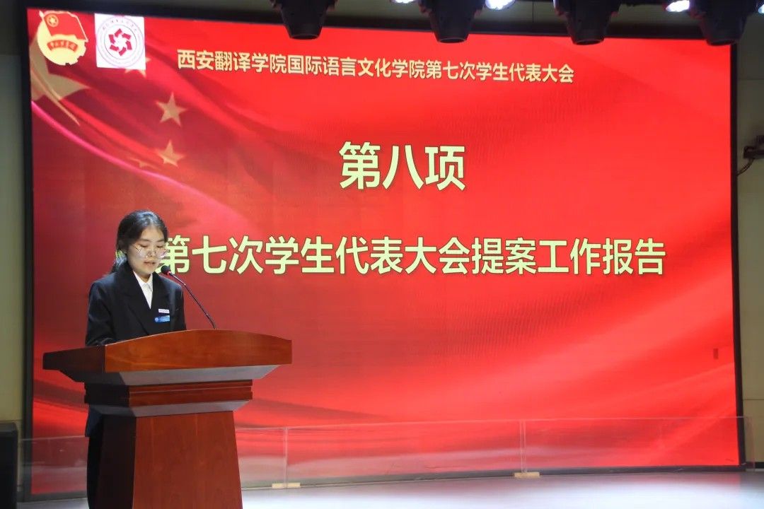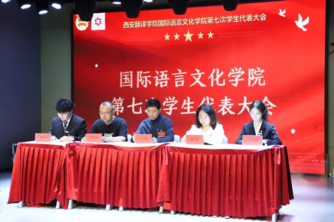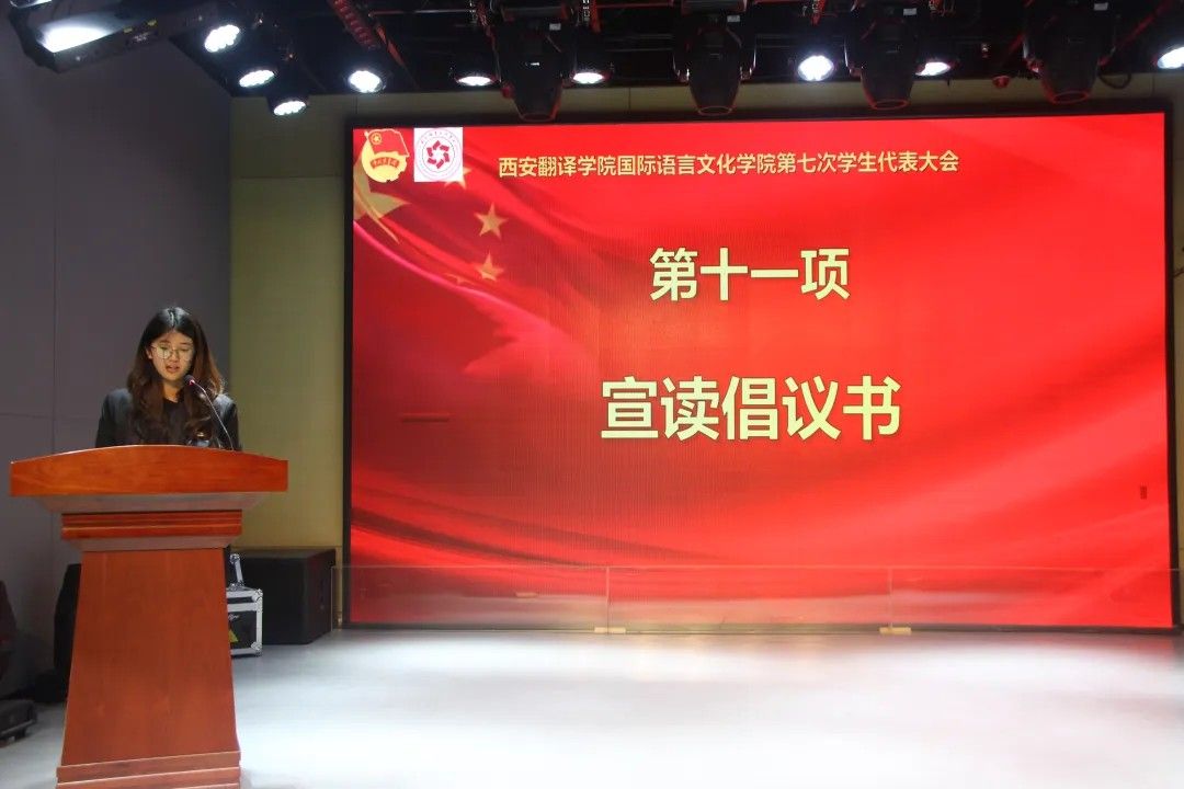由万象城体育awcsport党委书记、副院长宇文永康上台致开幕词,他强调要深入学习贯彻党的二十大精神,牢记习近平总书记对青年的殷切嘱托,以高度的政治责任感履行代表职责;其次要聚焦同学们成长成才的实际需求,积极建言献策,真正发挥桥梁纽带作用;同时要立足外语专业特色,在服务国家“一带一路”建设和国际传播能力建设中展现西译学子的青春风采。