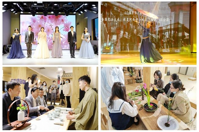 最后,郭炜宣布西译首届多语种文化艺术节正式开幕。本次开幕式在民族舞《九州同》的表演中落下帷幕。仪式结束后,与会领导和老师参观了日本文化体验馆,品尝了学生制作的日式料理、体验了日本传统的花道和茶道。学生向大家演示并介绍了日式便当、抹茶以及插花的制作过程,大家充分体验特色文化,感悟文化之美。