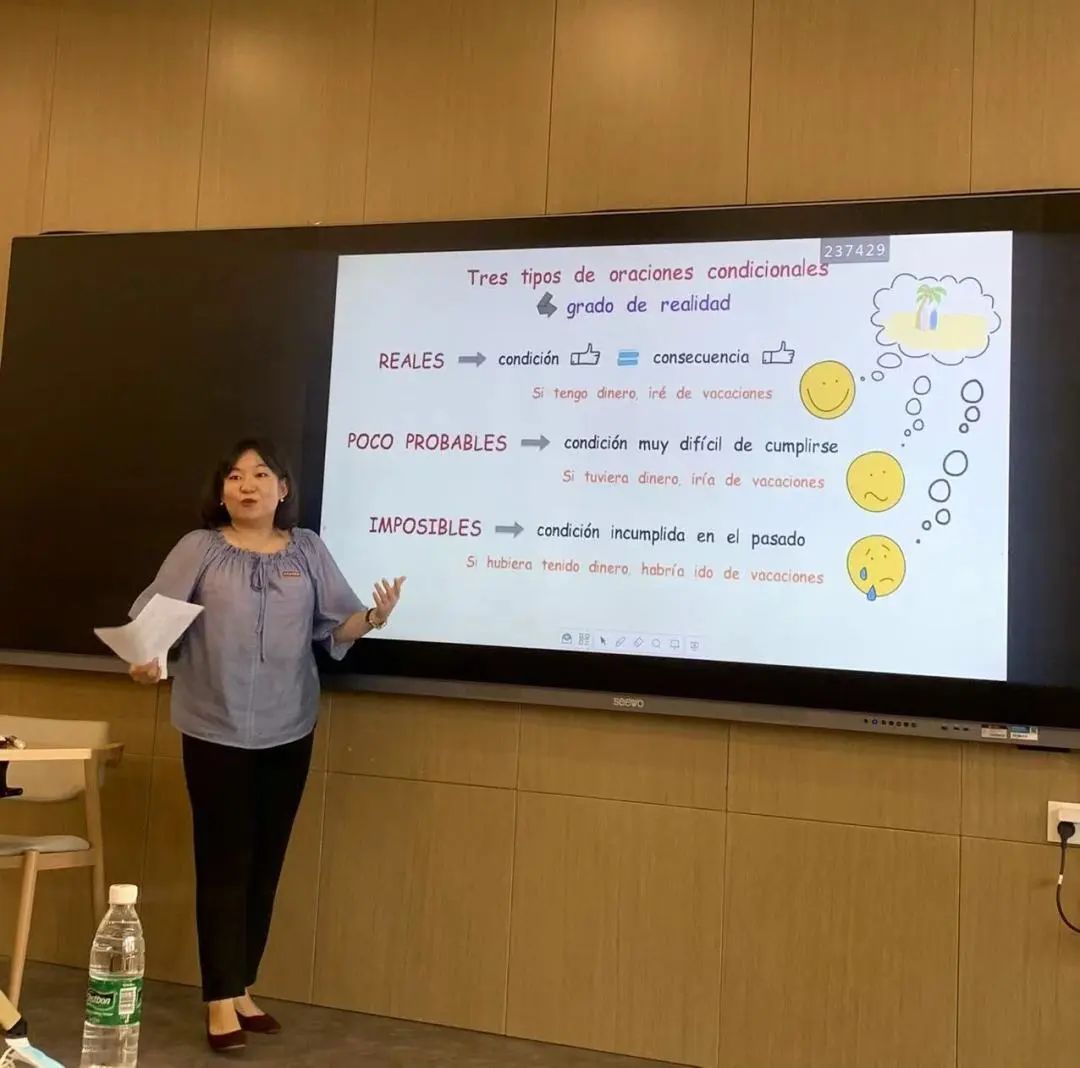 闫圣婷老师一直认为,教师是一份神圣的职业。站上讲台的那一刻,就承担起了引领学生成长的责任。因此,她始终以身作则,严格要求自己,不断提高自己的专业素养和道德修养。她积极参加各种培训和学习,努力让自己的教学方法更加生动有趣,让学生在轻松愉悦的氛围中掌握西班牙语知识。他的课堂总是充满着激情和活力。他不仅传授学生语言知识,更注重培养学生的跨文化交际能力和综合素质。他的教学方法独特而有效,深受学生们的喜爱和赞誉。