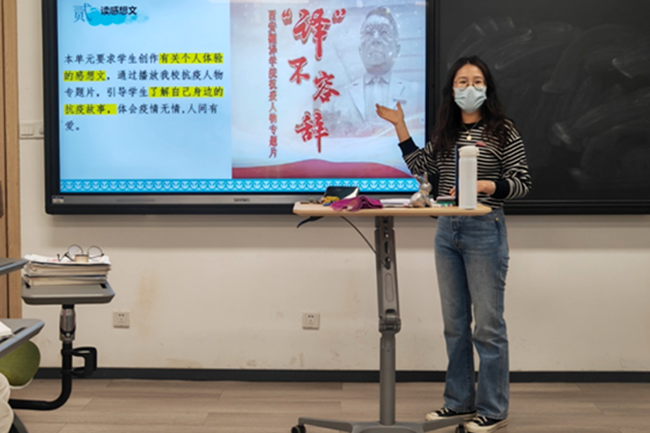 最后,与会教师就“三进”工作的开展情况以及日后如何推进展开积极讨论。教师们一致认为,“三进”工作并非只是口号,而是要在教学中踏实推进、积极落实,要以润物细无声的方式,从细微入手,从点滴处潜移默化地影响学生,全面推动习近平新时代中国特色社会主义思想进教材、进课堂、进学生头脑。外语教学的“三进”推进工作任重道远,需要不断地努力尝试,以新颖的手法与日常教学相融合。