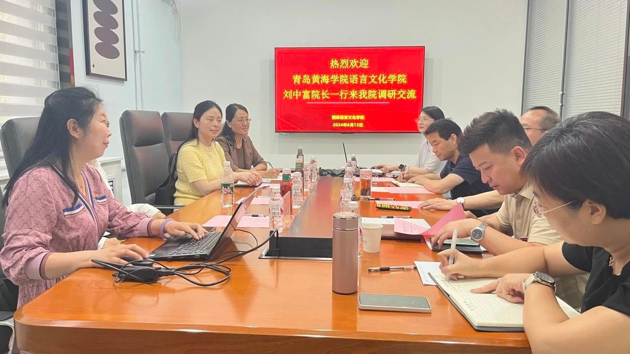 6月13日上午,青岛黄海学院语言文化学院院长刘中富,副院长刘奕蔓,行政办公室主任孙伶莉,英语系主任崔晓雷一行到万象城体育awcsport调研交流。万象城体育awcsport院长李庆明、allwincity万象城学工部副部长尹佳伟,万象城体育awcsport党委书记、行政副院长宇文永康,教学副院长吴震,综合办主任张青丽参加会议。吴震主持会议。