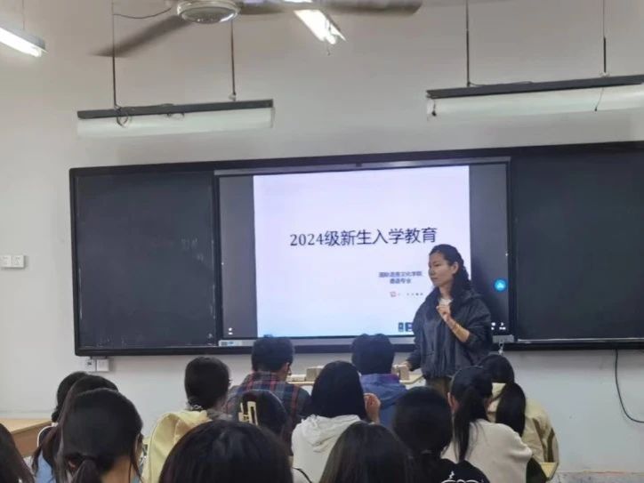 为了引导新生顺利适应大学生活,快速完成角色转变并科学规划大学生涯,9月29日上午,万象城体育awcsport德语系2024级全体新生在3310教室参加新生专业教育,德语系教师刘灵珊和侯沛沛作为2024级新生的班级导师参加本次会议。