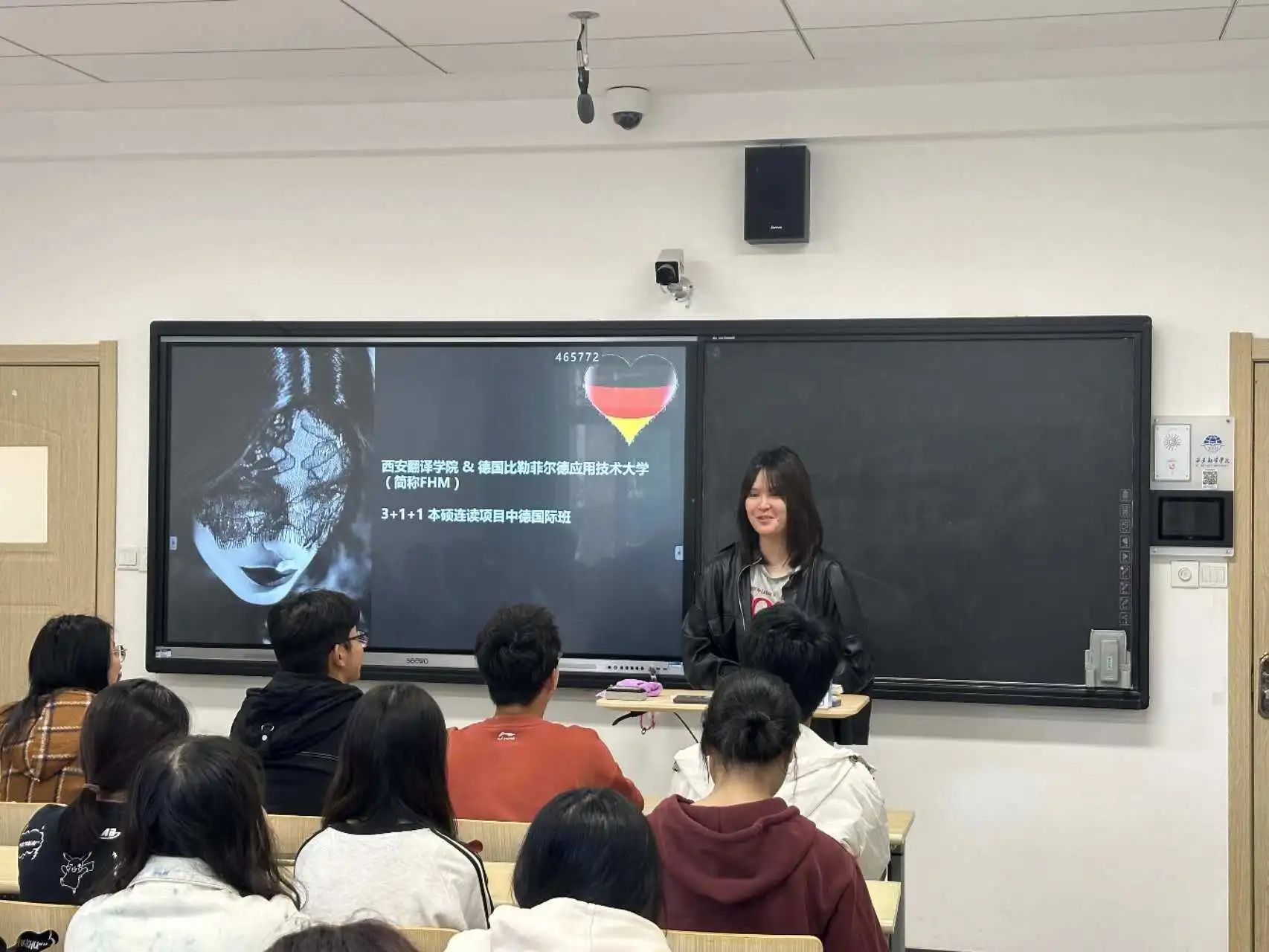 董琦详细介绍了“allwincity万象城与德国比勒菲尔德应用技术大学(FHM)3+1+1本硕连读中德国际班”项目,通过生动形象的语言、丰富多彩的照片、切实的案例,使大家了解了合作模式、学校情况、课程设置、实习实训等内容。该项目不仅有助于提升学生的语言技能,也为大家提供了国际化的学术体验,帮助他们在未来职业生涯中脱颖而出。