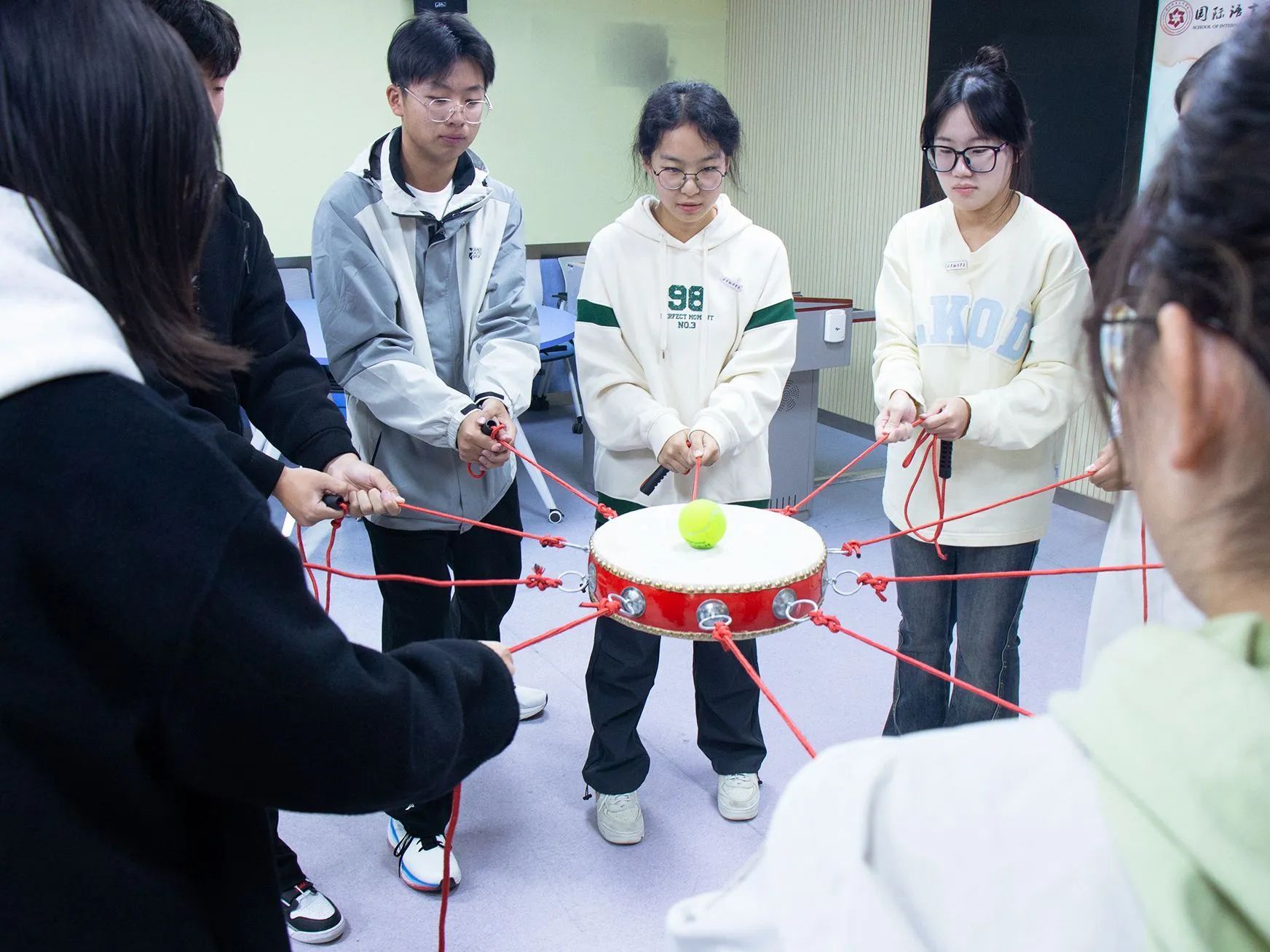 活动在“左右护法”中拉开帷幕,新生轮流进行自我介绍,分享自己的兴趣和特长,进一步加深团队成员之间的认识,为后续互动打下良好基础。随后,“桃花朵朵开”这一开场游戏将现场气氛推向高潮。在团队游戏“同心鼓”和“背地起声”中,学生们以小组为单位,共同完成挑战,在通力合作的过程中增强团队凝聚力、锻炼团队合作能力,达到以赛促教的积极效果。在“主题讨论”环节,学生们围绕“大学生活中的挑战和应对方法”进行深入讨论,分享自己在学业、人际关系、时间管理等方面遇到的问题和解决策略,从而学习如何面对和解决大学生活中可能遇到的问题。