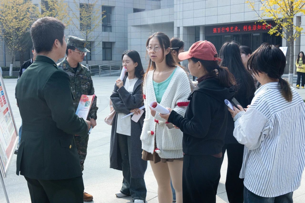 校武装部设立咨询点,为学生们提供了征兵宣传手册,同时,在校退役大学生向有意向的同学进行了了青年应征入伍的条件标准、报名流程、优待政策、退役安置及相关具体政策等方面的讲解,旨在让同学们了解到除了传统意义上的职业发展外,还能够通过征兵入伍锻炼自我、提高能力,实现人生价值。