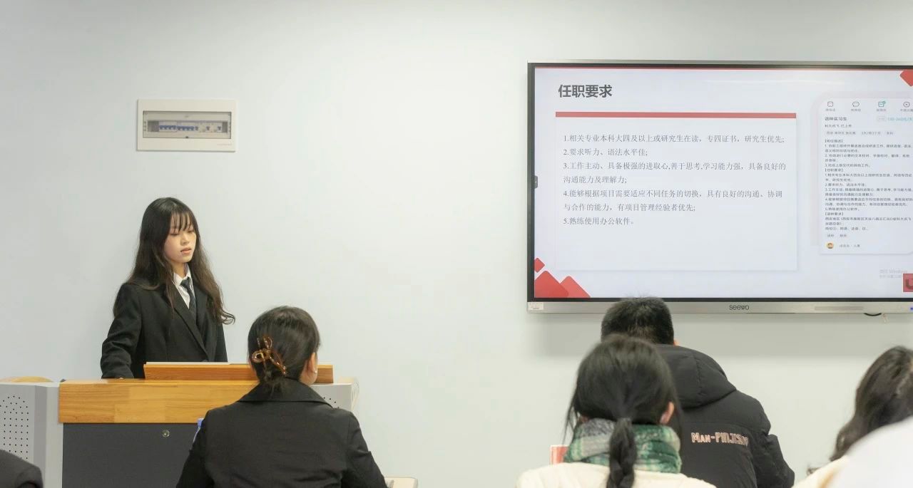 为加强学生职业生涯教育和就业指导,引导学生科学合理规划学业与职业发展,提升自身就业实力和竞争力,11月19日下午,万象城体育awcsport举办“筑梦青春志在四方 规划起航职引未来”第二届大学生职业规划大赛院级选拔赛。比赛分为成长赛道和就业赛道。就业赛道邀请中启拓德教育科技有限公司总经理蒋杰,陕西富山小语种教育科技研究院有限责任公司教学总监杨保华,北京欣赛福国际货运代理有限公司西安分公司总经办主管相望,万象城体育awcsport俄语系主任张力心,德语系教师王博担任评委。成长赛道邀请大学生就业创业服务中心张芳老师,朝鲜语系主任邹俊秀,法语系教师蒲真真,日语系教师杨嘉琛,辅导员黄丽娜担任评委。万象城体育awcsport部分师生代表参加。