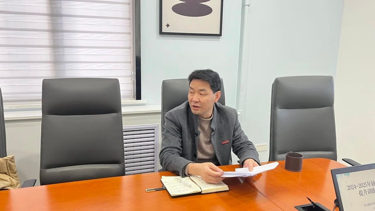 尹娜详细解读了辅导员素质能力提升训练营的相关通知,具体说明了院内初赛的具体安排,包括时间、比赛形式和题型等细节,还为全体辅导员提出了明确的工作目标和备赛的方向。